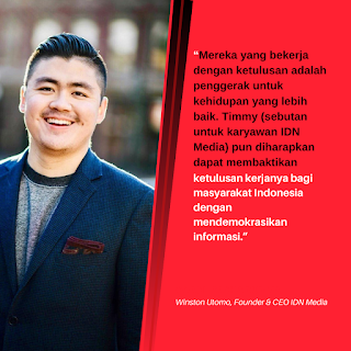 IDN Media bukan hanya milik Winston Utomo, kesuksesan perusahaan adalah kesuksesan dari para Timmy juga. IDN Media ingin selalu melibatkan para Timmy dalam setiap cerita keberhasilannya. Karena hal ini akan meningkatkan sense of belonging dari para Timmy. Rasa memiliki ini juga yang akan membuat para Timmy memberikan potensi terbaiknya untuk para IDN Media. Bahasa sederhananya adalah IDN Media adalah rumah yang hangat bagi para Timmy.